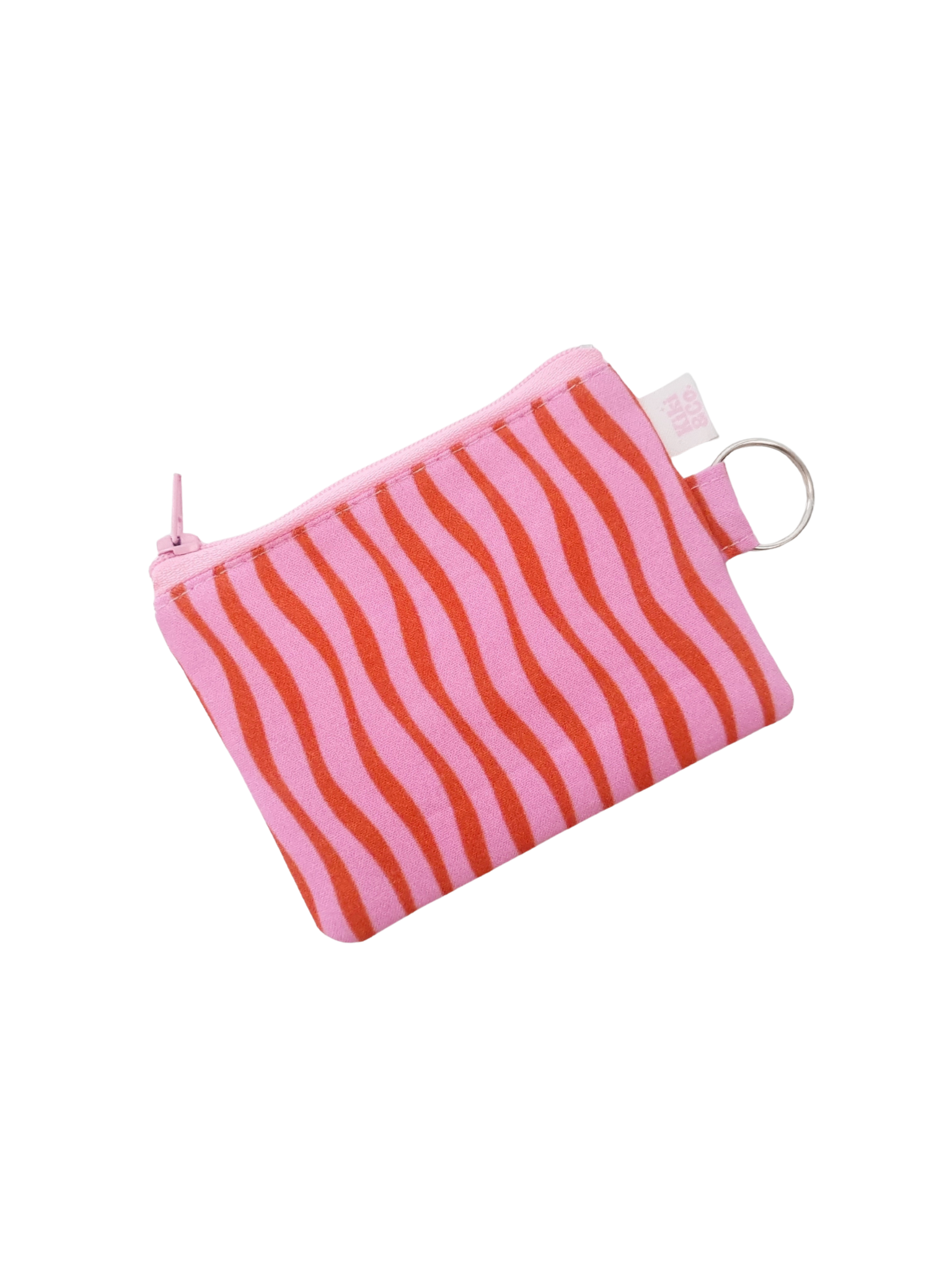 Keyring Zipper Pouch - Pink/Red Wavy Stripes