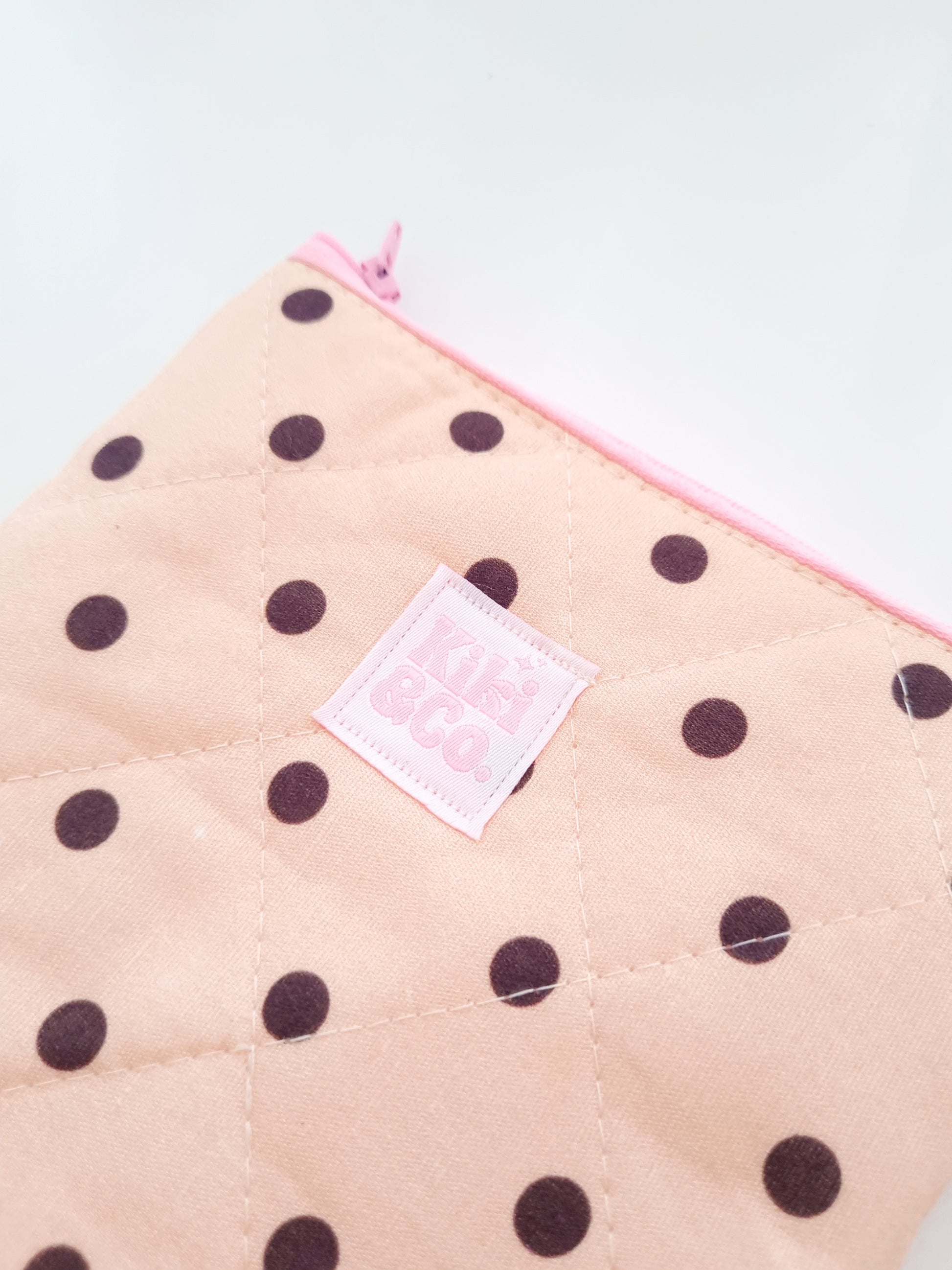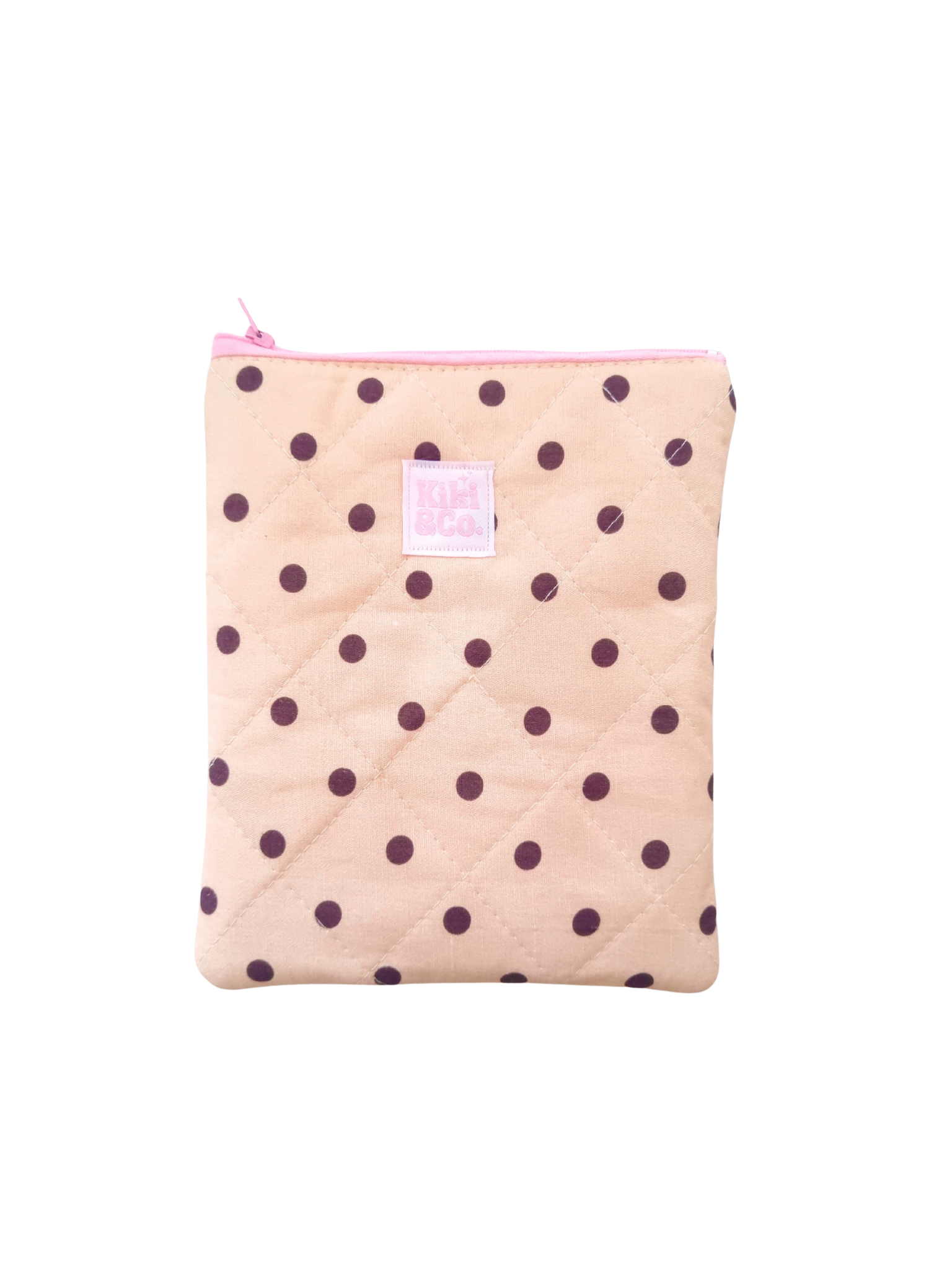 Quilted eReader Sleeve - Beige/Brown Polka Dot
