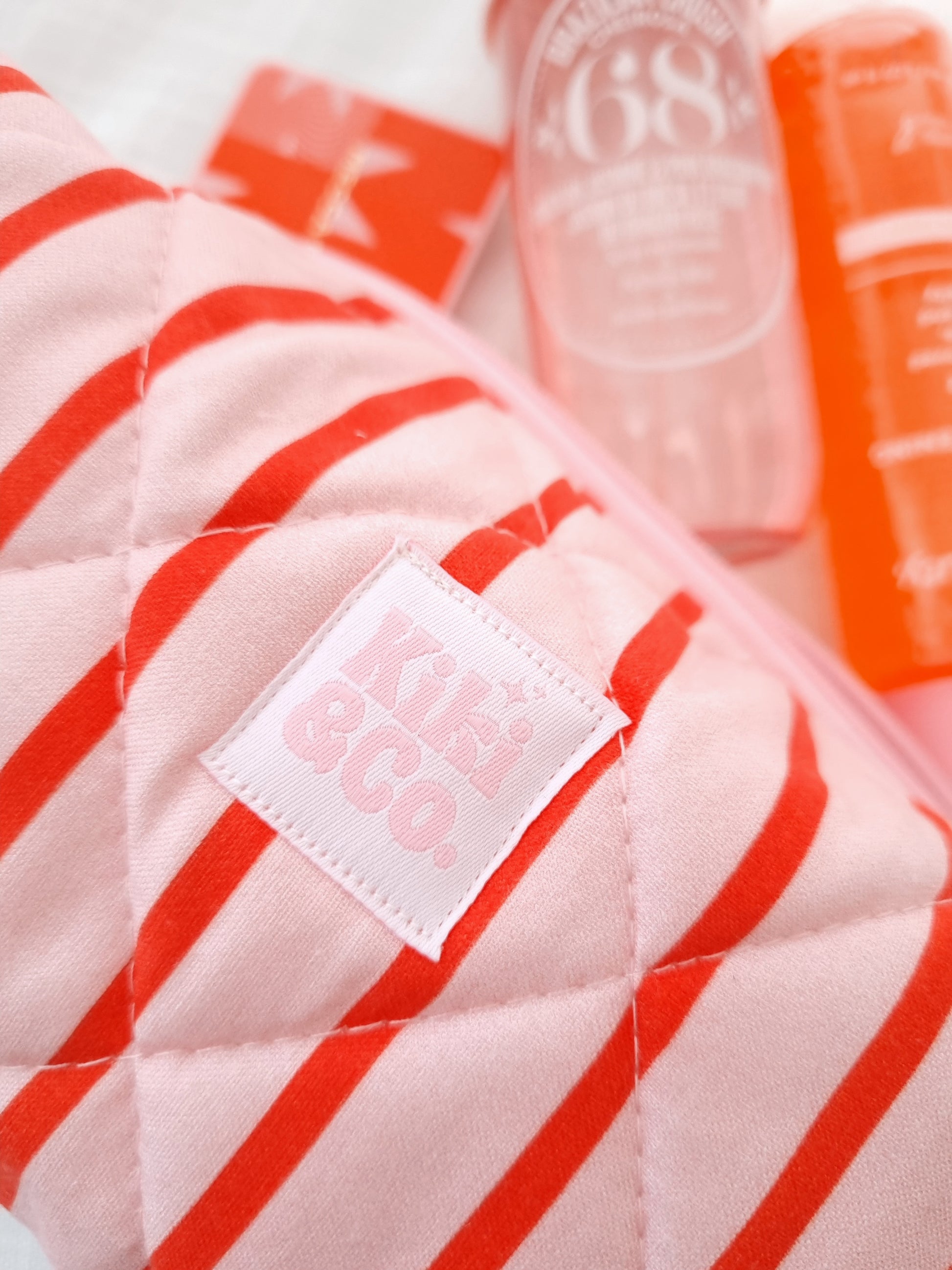 Quilted Makeup Bag- Pink/Red Stripe